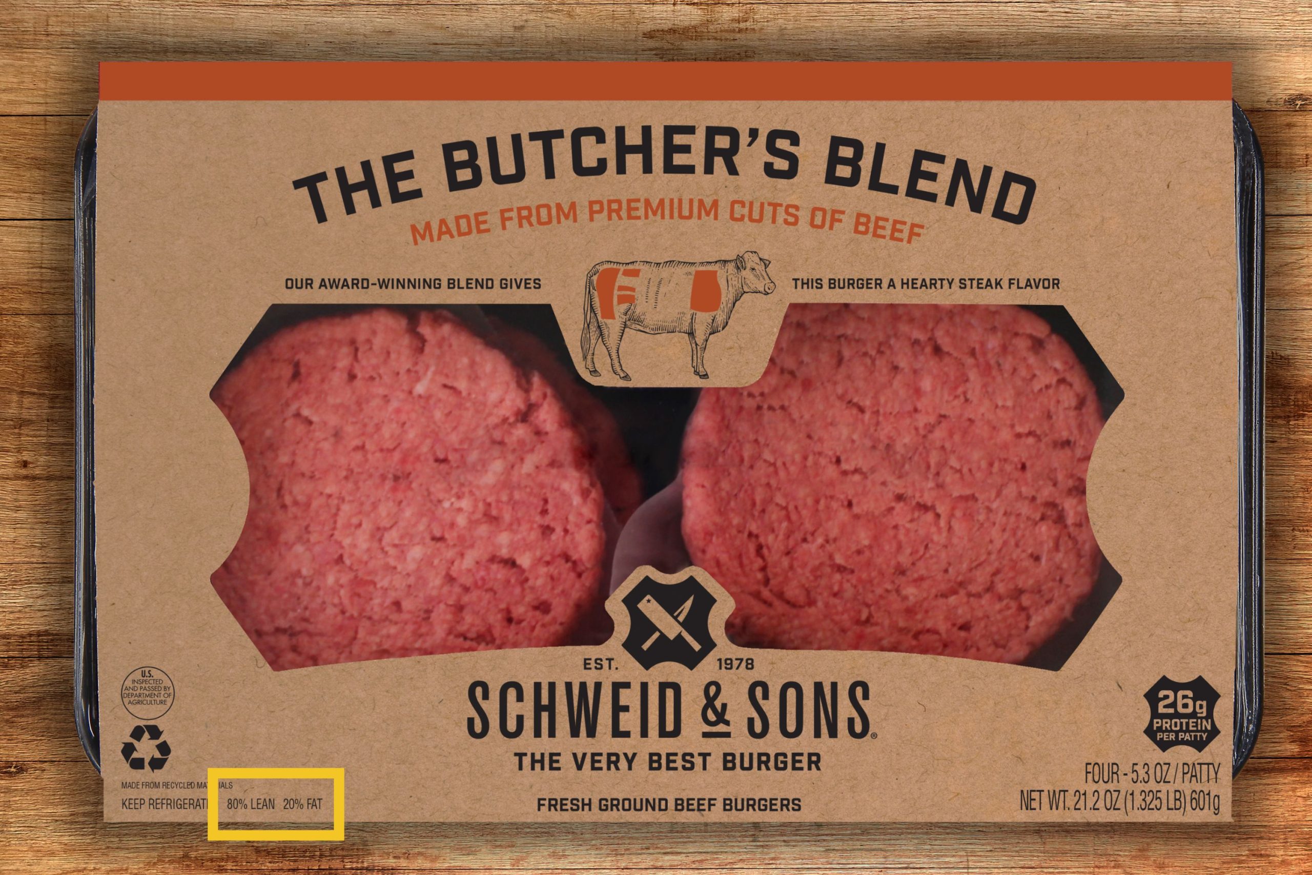 schweid and sons the butchers blend burgers with 80/20 lean to fat ratio