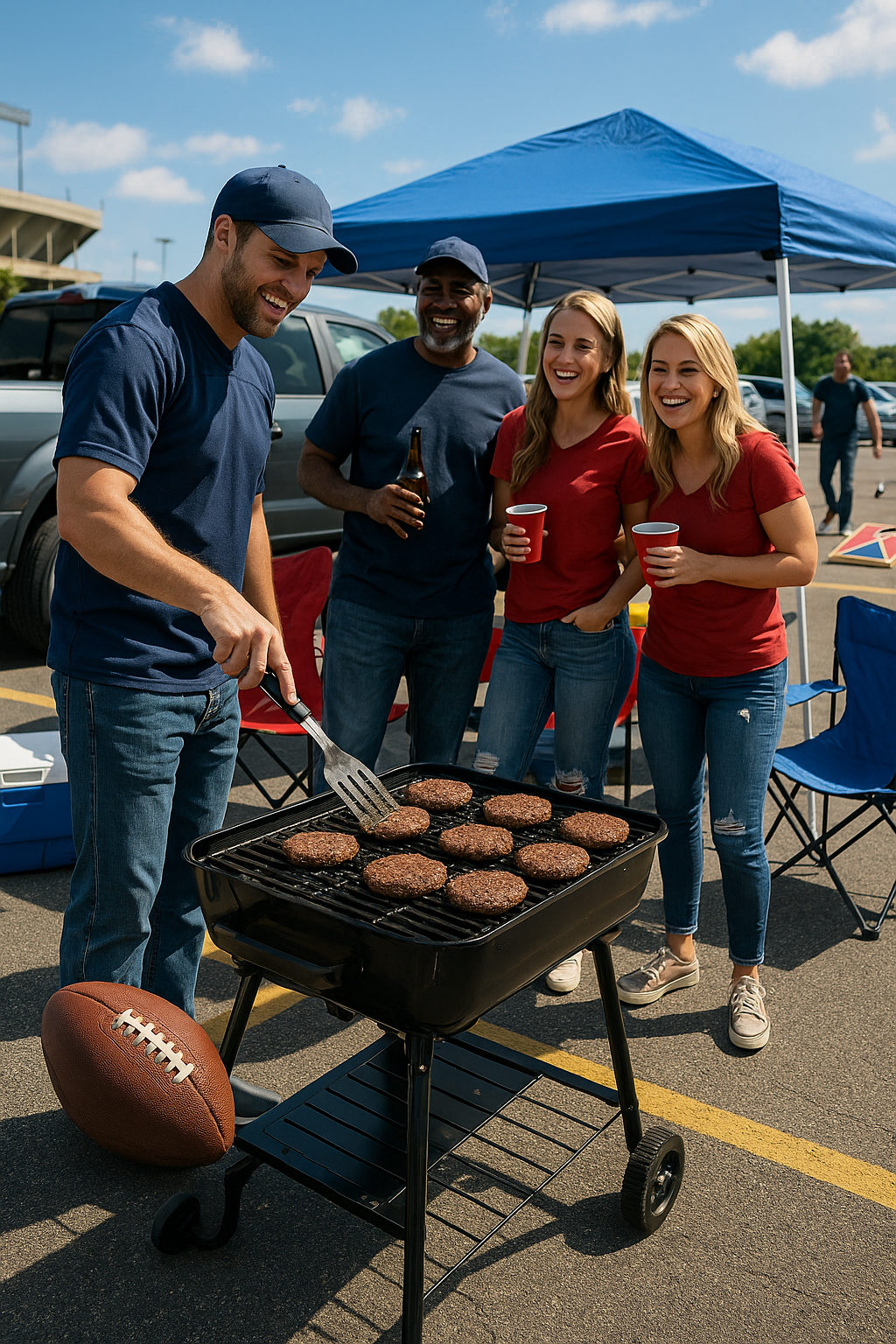 Tailgating for a football game while making burgers
